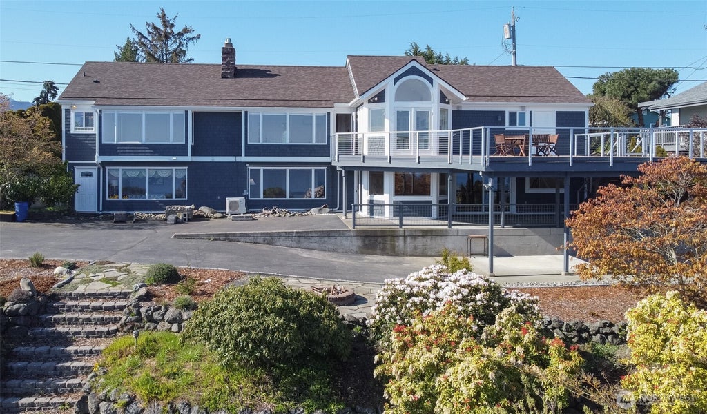 This updated home offers modern finishes throughout, blending style and functionality to create a luxurious living experience. Up-close water views stun from both the main and lower levels, the home sits on a spacious double city lot. The chef’s kitchen features heated tile floors, while the home boasts 4 bedrooms with cedar-lined closets and 3 well-appointed bathrooms. the main level is complete with an expansive deck that offers the perfect space to relax and enjoy the breathtaking views. Two Propane fireplaces and an efficient ductless heat pump system ensure year-round comfort. The main level includes a finished two-car garage, while the lower level provides a workshop for projects and hobbies. A covered RV parking area adds convenince.
