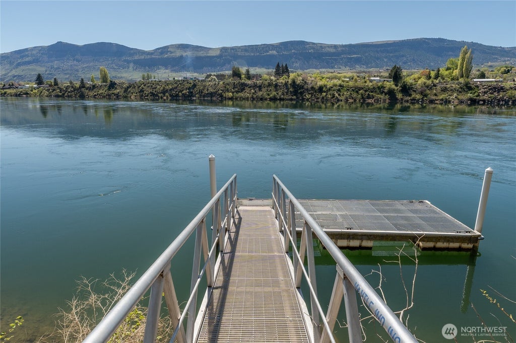 Columbia River access with a private dock! Enjoy unobstructed views of the Columbia River and surrounding mountains at the end of a private cul-de-sac. This 2 bedroom 2 bath home lives large! Very spacious living room with cozy woodstove. Lovely dining area and kitchen with a large island. Primary bedroom & bathroom with large closet. Second bedroom that connects with second bathroom. Sliding glass door that opens to the star of the show! Covered patio, fully fenced yard and the Columbia River. Walk down to your private dock and enjoy boating, fishing, and other river recreation. Carport with plenty of extra parking in driveway.