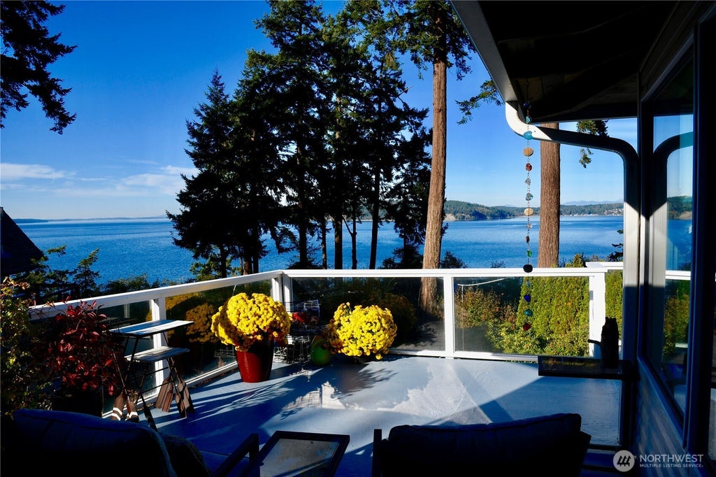 Turn key home with private community beach & boat ramp. See whales & eagles all year without high taxes, high banks or king tides. Epic views of Camano Island, Mt Baker & Sound. Main floor offers open concept kitchen, dining & family room allowing entertaining with ease inside or out. Oversized primary bedroom with walk-in closet, ensuite bath & access to deck. Second room can be an office/bedroom. Lower level with complete kitchen, family room & two more large bedrooms. Private entrance with a covered patio with garden & water views. Bonus tool/workshop room, 2 large storage rooms & mud room. Investment property with 2 potential rentals. Interior renovation in 2015 to kitchen & baths. New carpet, tankless water heater, wired for generator.