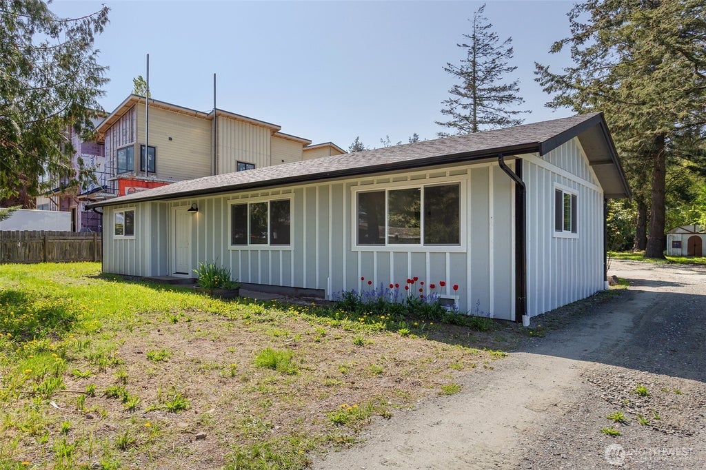 Newly remodeled, sweet, single-story home in the quaint town of Friday Harbor. This home was taken down to the studs and rebuilt; new board & batten exterior, newly installed insulation, drywall, plank vinyl flooring thru-out, new efficient heating system, hot-water tank. The new kitchen boasts all-new soft-close cabinetry, quartz countertops with a waterfall side, an eating bar, a new dishwasher, stove, and microwave. The primary bedroom is on one side w/en-suite bath, while the two bedrooms, full bath, and laundry area are on the opposite side. A covered patio and detached single-car garage. An INVESTMENT DREAM, the property is zoned Multi-Family, and there is room for two more homes or tiny homes or a duplex. Chicago T&E 245470631 comp7F