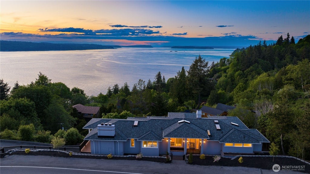 Experience 270 degrees of sweeping views of Possession Sound, the Olympics & Mt. Baker. This luxurious & newly remodeled craftsman showcases custom design, high-end finishes & panoramic vistas from nearly every room. Bright & light-filled w/vaulted ceilings, skylights, gourmet chef’s kitchen, open concept dining, 2 living spaces & elegant primary suite that has its own east wing w/huge bed, private deck, office, spa-worthy bath & 2 walk-in closets. The main floor also features a spacious guest room w/private bath. Go downstairs for 2 lrg beds, 1.5 bath, storage, massive rec room & huge 2-car garage. Unwind outside on the newly stained 2-tiered entertainment deck overlooking unmatched views, mature landscaping & peaceful privacy.