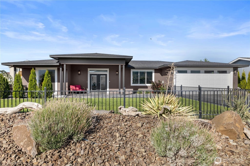 Turnkey home in Desert Aire with stunning Columbia River and mountain views! All bedrooms feature ensuite bathrooms, perfect for comfort and privacy. Enjoy the covered front porch, stamped driveway, and stamped back patio—ideal for relaxing or entertaining. The fully fenced front and backyard offer space and security. Inside, the gourmet kitchen includes stainless steel appliances, quartz countertops, and oversized pantries with custom shelving. Unwind in the 22x10 hot/swim spa combo. A must-see home with style, function, and exceptional features throughout! Enjoy the amenities including Golf course, airfield, community pool and park, tennis courts, gym, walking trails & boat launch!