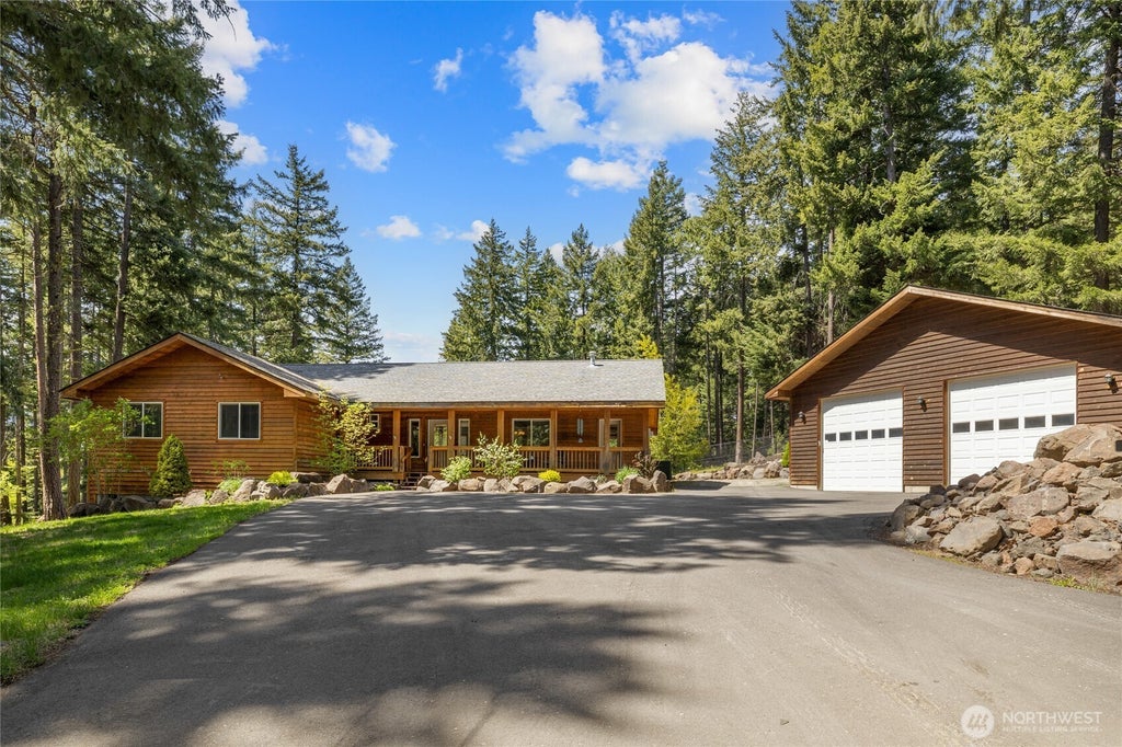 Turn key cabin on over an acre of treed serenity! Easy entertaining great room~ a well appointed kitchen with island seating, cute dining area, & living room with a toasty propane stove. The indulgent Primary Suite hosts a large tiled shower, corner tub, & huge WIC. 2 add’l guest bedrooms, a full bath, + a home office! Rock away evenings on the charming covered front porch, or enjoy soaking in the hot tub after a long day on the lake or snowmobile trails! Spacious back deck overlooks your big fenced back yard & has peek-a-boo mountain views. 30x32 garage has room for all your toys + a home gym! Minutes to Lake Cle Elum, snowmobile trails, hiking, and historic Roslyn- a year-round adventure base camp!