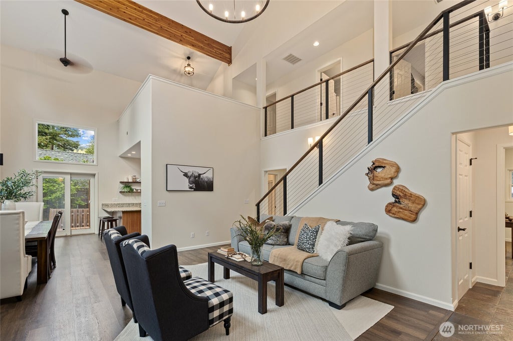Sought after Driftwood Acres w/ private gated Lk Cle Elum access & boat launch. 27' exposed beam ceiling & wall of windows flood space w/ natural light. The chef's kitchen boasts cherry cabinets, honed granite, SS appliances, gas stove & wine fridge. Main floor primary suite, walk in closet w/ built ins, remodeled bath and slider leading to backyard. Upstairs offers 2 bedrooms, 2 baths, loft/office space & large game/media rm that could double as a bedroom. Outdoor perks: BBQ deck, piped in gas firepit, hot tub, gardening space & multiple seating areas surrounded by new fence. 3-car garage w/ room for toys, RV prkng & generator wiring. Successful vacation and long term rental.
