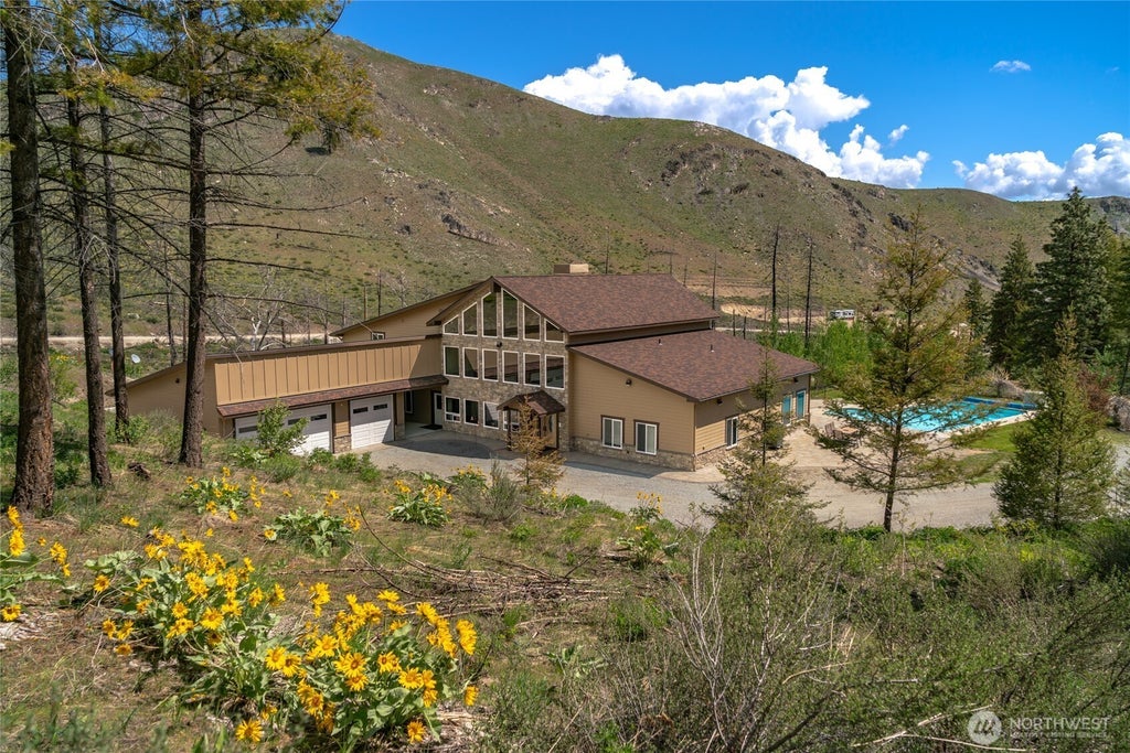 Private and secluded location with 2 homes on acreage with large shop. 3 separate tax parcels included in sale. Main residence offers luxury accommodations. Custom-built with great room boasting 25 ft ceilings. Main floor features primary suite w/Jacuzzi Tub, Walk-In Shower, and Walk-In Closet. 2 additional Beds, Guest Bath, Exercise, Utility, Office, & Upper level office, storage closet, bonus rm, bath, and loft. Partially finished basement w/ 1000+ sq. ft . Large deck and in-ground pool. Incredible views. 2016 MH w/garage on adjacent property. W/D hookup, shower/toilet in garage. Shop 2592 sq ft. An Oasis escape. Zoning potential for STR & 5-acre splits. —buyer to verify information. Special financing terms offered by preferred lender.