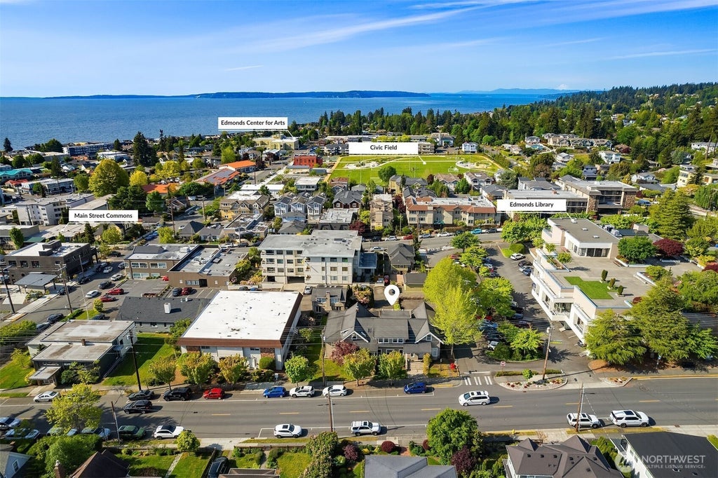 Rare 10,000+ SF, BD2-zoned lot in the heart of Edmonds Bowl w/ preliminary plans for 12-unit mixed-use condo building w/ ground-floor commercial space, perfectly positioned in a vibrant, high-demand location. Existing 1901 structure spans 7,738 SF w/ flexible layout & 6 entry points, ideal for multi-tenant leasing or creative repurposing during redevelopment phases. 1980s remodel updated plumbing & electrical systems while retaining character: inlaid hardwood floors, stained glass & coved ceilings (preserved beneath ceiling tiles on main level). Top floor features rooftop deck & full kitchen. Bonus: 1,100 SF detached structure offers additional potential. Unmatched! Build, lease, or hold in one of Edmonds’ most walkable & coveted locations.