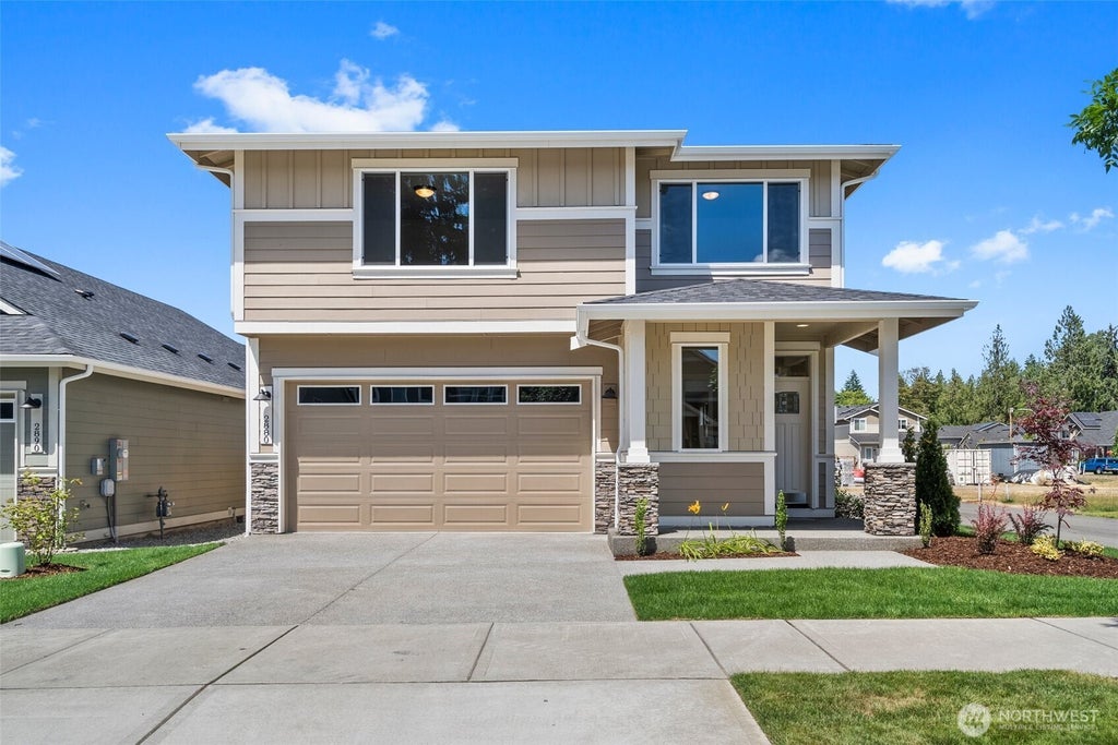 Special Financing Available! A 2/1 temporary interest rate buydown is now offered at Skyview Estates when using our preferred lender, ask for details! Step into the chef-inspired kitchen—featuring "Graphite" Maple cabinetry, quartz countertops, a full tile backsplash, and a gas stove with double oven. Expansive hardwood floors lead you through light-filled spaces, including a main floor den and an upstairs bonus room, designed for both work and play. Outside, relax on the covered patio overlooking a fully landscaped yard including privacy fencing. Energy-efficient features like solar panels, a heat pump, and a hybrid water heater ensure year-round comfort. All this in a Rob Rice Home, just moments from I-5, Costco, and Tumwater Schools.