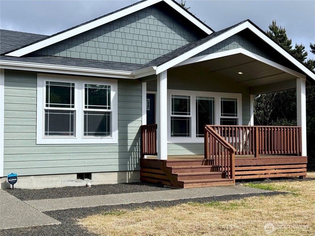 2BR, 1.75BA home feels like new & is just around the corner from the Butterclam Beach access path! 1160 sq ft of well-designed living space, this light-filled home features an open concept layout w/vaulted ceilings, LVP flooring, & a cozy fireplace w/stone surround & live edge mantle. Kitchen w/granite countertops, under-mount sink, island w/breakfast bar, & high-end finishes throughout. Primary suite w/walk-in closet, ensuite w/walk-in shower & sliding glass door leading to a covered back deck—perfect for relaxing. Additional bedroom, utility room, & a finished 1-car garage complete the barely lived in home. Includes a propane tankless water heater & whole-house water filtration system. Ideal for your beach retreat or full-time living!