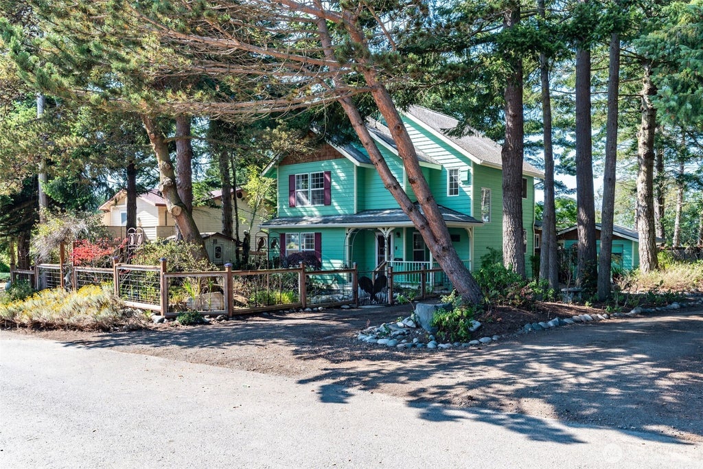 Magical setting in North Beach, just blocks to the waterfront, Fort Worden. This peaceful mini-sanctuary is set amongst big trees, 2 ponds and gardens. The house has 3 bedrooms and 3 baths with bamboo floors throughout. Stone floors in entry and kitchen, along with other unique touches. Kitchen is open to the dining room and to a large sunny living room. Accessible walk-in tub in the downstairs bathroom. Oversized double-car garage and a second garage that has been used as an art studio. Perfect for a workshop. The backyard offers privacy and has a soothing pond with flagstone paths. The double corner lot is adjacent to an unopened street for even more privacy and space for your RV or boat. Freshly cleaned roof & gutters. Simply magical!
