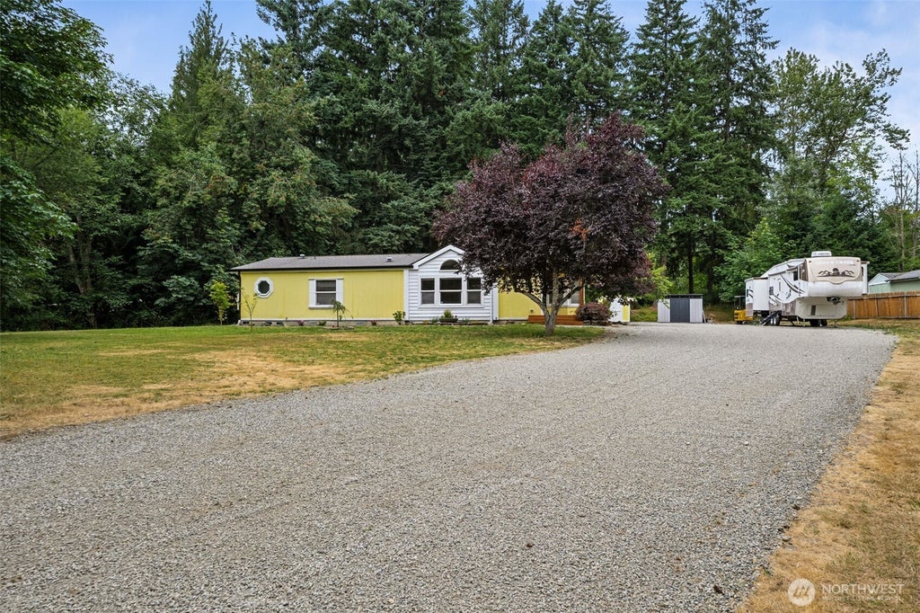 This home with its oversized 1.125 acre fenced homesite gives you privacy & room to stretch out & breathe. For peace of mind, you get a newer roof, skylight & covered gutters. There's A/C! Vaulted ceilings, wide baseboard/window & door trim add beauty to the open layout. Plenty of room to make great meals in the huge kitchen, & there’s both a dining area & eating nook for flexible space. Love the primary bath w/its relaxing soaking tub & separate shower. There's a spacious enclosed porch for extra living space too. You'll enjoy outbuildings for extra storage, & fruit trees. Included is entry to the Lake Lawrence Community Club (2 blocks) w/Lake access, covered picnic area, playground, basketball & tennis courts & more. You’ll love it here!