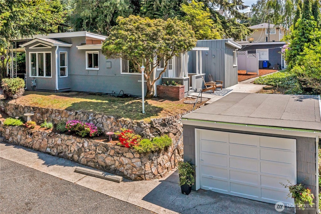 A rare opportunity in sought-after University Place! This charming 2-bedroom, 2-bath home & detached garage sit on a large 10,500 sq ft lot with the unique bonus of a 1-bedroom, 1-bath cottage, which can generate rental income covering up to 25% of your mortgage! The property is tucked away on a quiet street with a peek-a-boo view of Puget Sound & Narrows Bridge. Enjoy cozy evenings by the wood-burning fireplace or relax on the covered porch in this serene setting.Prime location - just minutes from award-winning schools, Whole Foods, Trader Joe’s, Chambers Bay Golf Course, restaurants, parks, and recreation make this home a perfect blend of comfort and convenience.Home & garage have new roofs; all new exterior paint. All appliances stay.
