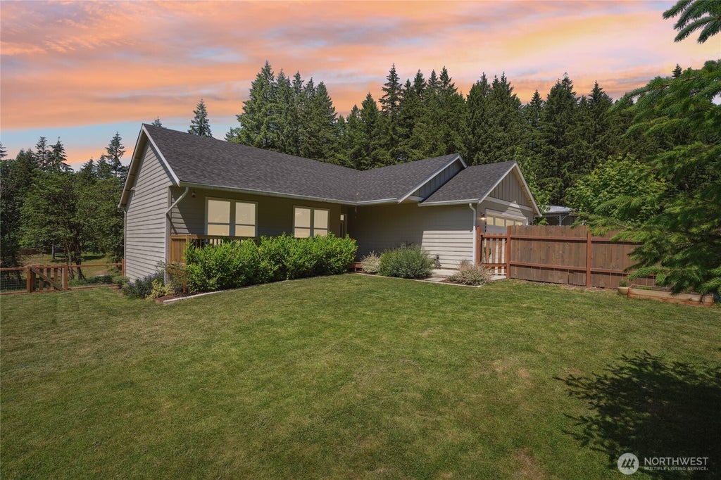 Welcome to this charming 3-bedroom, 2-bath home on a spacious 0.75-acre lot, ideally located just 1 mile east of I-5 in Castle Rock. Built in 2021, this 1,500 sq. ft. home offers an open-concept layout perfect for modern living. The kitchen features quartz countertops, stainless steel appliances, a pantry, and a large bar ideal for entertaining. Enjoy a comfortable living room that opens to a deck overlooking the beautifully landscaped and fully fenced yard—perfect for outdoor gatherings, pets, or gardening. Don't miss this move-in ready home with the perfect blend of comfort, style, and convenience!