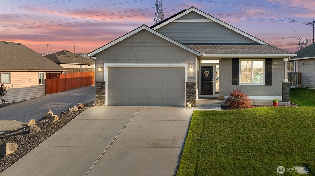 Meticulously maintained quality move-in ready Southridge home in perfect condition on large lot with solar panels. Open concept kitchen, quartz counters, island/breakfast bar, cabinet high back splash, staggard cabinets, soft close hardware, stainless appliances, gas range. Vaulted ceilings, “wood look” tile flooring, gas fireplace with tile surround, wood wrapped windows, plenty of natural lighting. Nice separation between bedrooms, primary bedroom has great walk-in closet and attractive bathroom. Laundry room has cabinets and a sink. Finished garage, possible side access to huge, fenced back yard, fire pit, covered back patio. Great neighborhood near shopping, schools, restaurants, freeways and city views from the covered front porch.