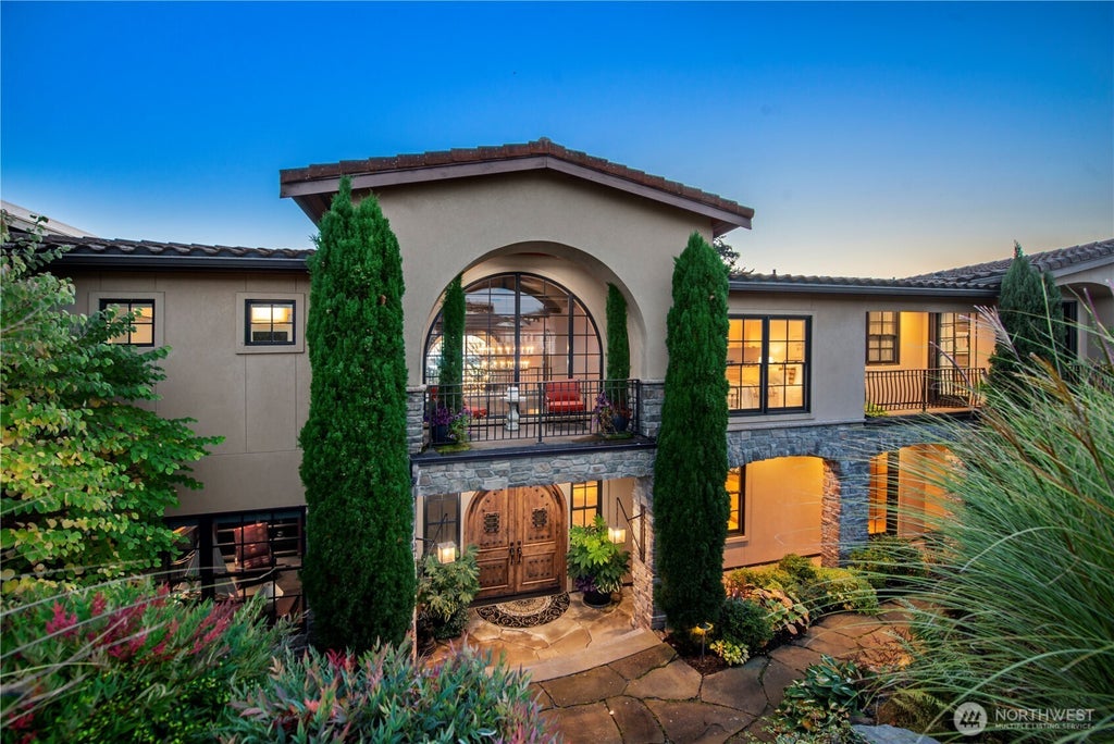 This exquisite view estate embodies luxury living with exceptional design, premium materials, and thoughtful craftsmanship. Glorious views of Lake Washington, city and mountains. The main level welcomes you to formal living and dining, stunning kitchen with large family room, handsome office and en suite bedroom. The upper level hosts 2 flex space rooms plus 4 en suite bedrooms all with individual access to decks including the significant primary suite. The lower level is incredible entertaining space with theatre room, rec room, family room, wine room, bar and en suite bedroom. Elevator services all 3 floors. Parking for 6 cars between 2 garages. Beautifully designed landscape with water feature and lighting creating lovely ambiance.