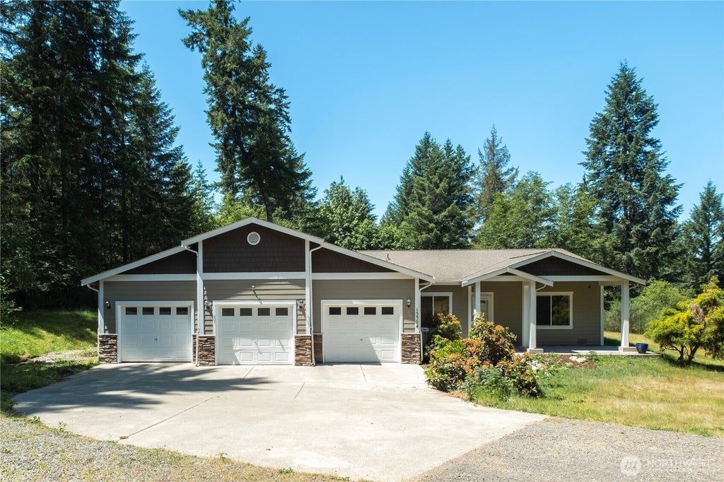 Are you looking for a serene 1-story retreat on 5 private acres? Look no further! This home is a true gem. Inside, enjoy fresh paint, LVP throughout, vaulted ceilings, and abundant of natural light. Flexible formal dining rm. Spacious living rm features vaulted ceilings & a gas fireplace. The kitchen boasts a pantry, SS appliances, ample cabinets, and counter space. The primary suite offers deluxe comfort. When the gardens bloom, it feels like your own Shangri-La. Relax by Rocky Creek and let the sounds of nature melt stress away. Low-maintenance concrete patio is perfect for outdoor living. 3-car garage, too! You won’t be disappointed.