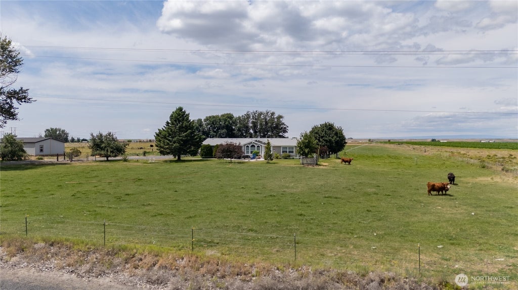 Enjoy country living and incredible sunsets from this well-kept 3 bed, 2 bath home with a 2-car shop on 5 acres. Fresh paint, new windows, and newer roofs on both the home and shop. Inside you’ll find a spacious kitchen, great natural light, a comfortable living area, primary suite with attached bath, and a covered back patio. The 24x32 shop fits 2.5 cars with space for tools or storage. Property is fully fenced and ready for horses, cattle, or your hobby farm dreams—plus 400 amp power and plenty of water to keep the grass green. Storage shed included with sale.
