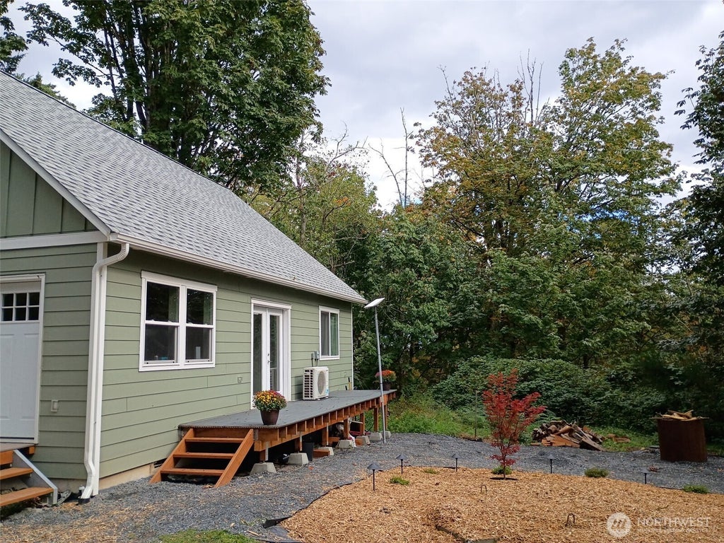 Discover the perfect blend of comfort and space with this well crafted 1,522 sq ft home found at the end of a private road nestled into nearly 5 wooded acres of possibility. The inviting floorplan features a primary main floor bdrm w/a spacious bathroom & several accessibility features incl: a wide entry, open floor space & plumbing for a walk in shower. The upper level holds two bdrms plus a spacious landing for endless possibilities. The bright open concept kitchen-living area opens through French doors to a gorgeous outdoor space for your enjoyment of nature. Whether you are looking for peaceful country living or a property with room to grow, this delivers privacy, functionality, and opportunity in a picturesque setting.