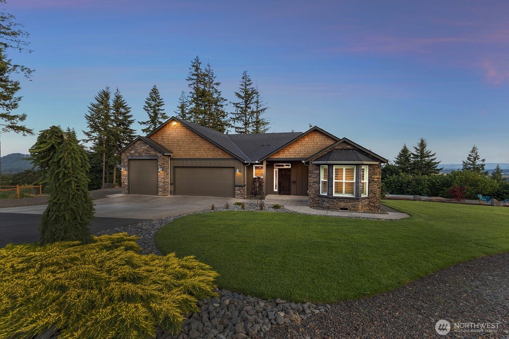 1 level in gated community on 5.4 acres. Stunning river, city & territorial views! Just 5 mins. to I-5. 4 bedrooms, 2 bathrooms. Timber frame details, engineered hardwood floors, & light filled windows capture the views! Great room with woodburning fireplace, stone surround & custom built-ins with leathered granite. Kitchen features granite counters, island, pantry, gas range, & instant hot water. Luxury primary has a gas fireplace, private deck, soaking tub, walk in shower & large walk-in closet. New carpet & interior paint. 3 bay garage with epoxy floors & a huge 10 X 32 ft bay. Relax on your 3 decks, off main home, primary, or poolside. New Trex composite decking! New landscaping, sprinklers & above ground pool! Trails to explore!