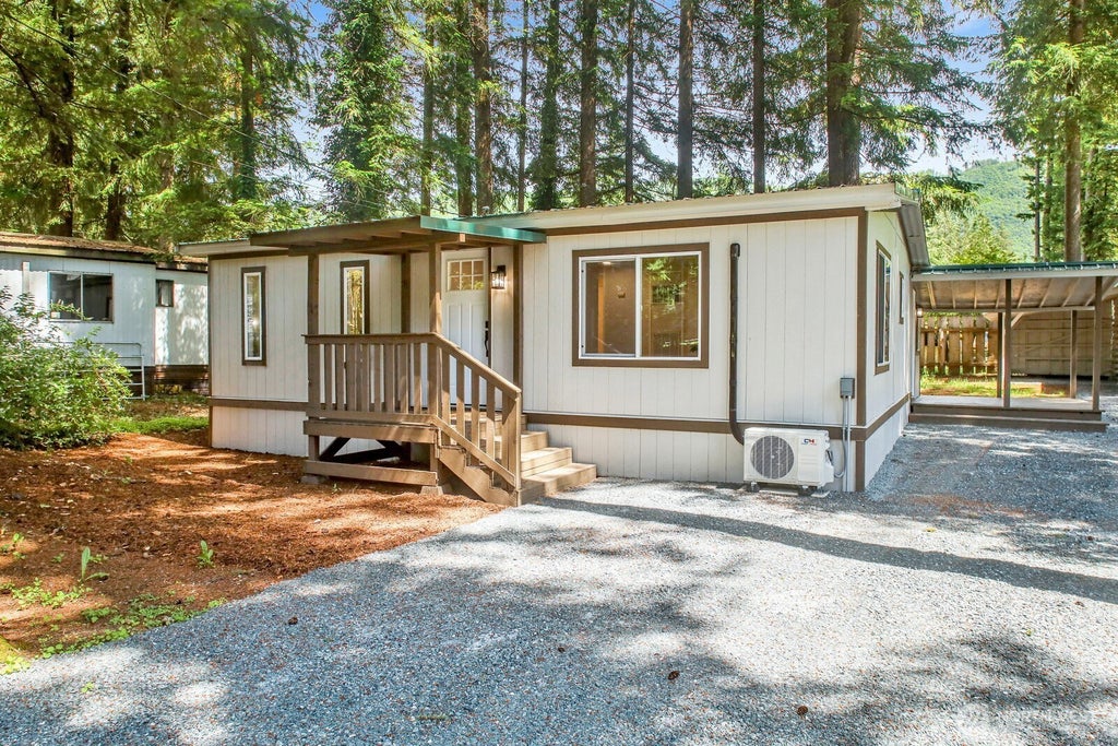 Beautifully updated move in ready home! Walk right into the living room with big windows with natural light flowing in. All new waterproof laminate flooring throughout. New white cabinets w/ new counter tops. Fully updated bathroom. Back room could be used as a TV room/ dinning room. Minisplit makes it great for AC in summers and heat in winter. Great sized back covered porch. Large covered outbuilding can make a great carport or storage area. Metal roof for easy maintenance. Mature trees on property gives that extra privacy all around. Lots of parking space! Close to Mount Baker, Silver lake and about a 30 min drive from Bellingham. Special financing available
