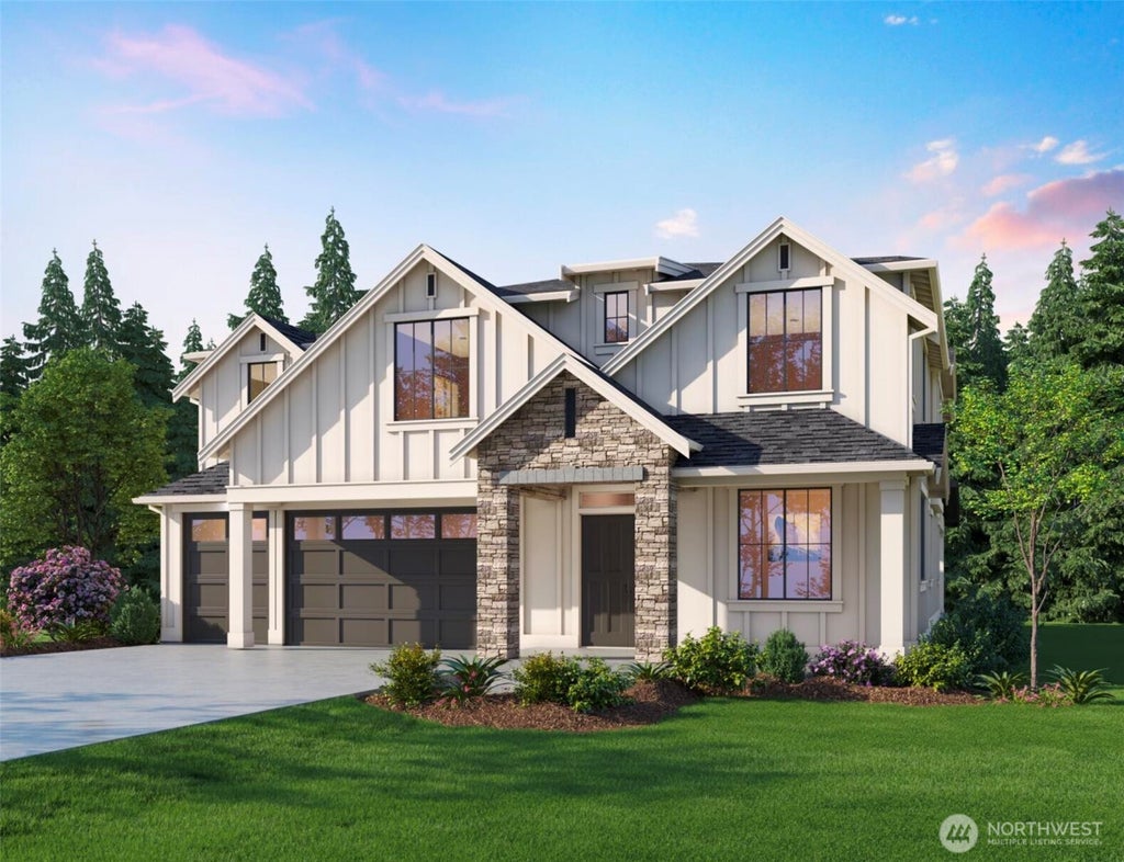 Coveted "Cadmium" plan by Murray Franklyn Homes nestled in the NEW Cambridge Estate community in Kirkland's cherished Bridle Trails neighborhood. Covered front porch & double-door entry welcomes you home and leads you past a den to grand dining room with open to above ceilings & 2-story great room with a soaring fireplace & floor to ceiling windows. Main floor guest suite boasts private en suite bath & covered patio. The gourmet kitchen features a large island, nook area, & a large working pantry with plenty of storage space. On the 2nd floor, 4 bedrooms include a sumptuous master suite with a large walk-in closet, 2 bathrooms, & large laundry room. Covered patio boasts a fireplace & infrared heaters. Estimated Completion: November 2025.