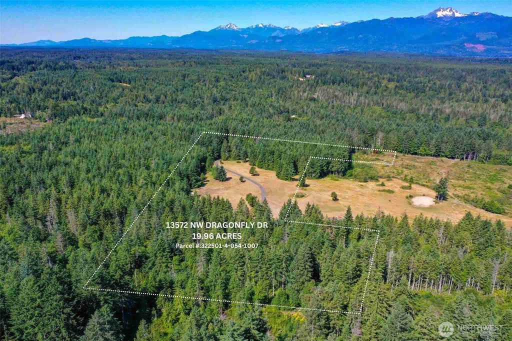 Rare almost 20-acre parcel with breathtaking Olympic Mountain views and partial Hood Canal views. A mix of cleared land and trees offers privacy and natural beauty. Private paved driveway winds through the trees, opening to multiple cleared building sites. Power on site, shared well installed, 3 sides are fenced. Most of the work here has already been done! Do more clearing to open more mountain views! Hard to find Pacific Northwest setting with western exposure. Peaceful, private, and full of potential— buyer to verify if it can be subdivided. Perfect spot to build your dream home —bring your builder and vision! Close to Seabeck Marina, 20 minutes from Silverdale. Must be accompanied by a broker to enter onto the property.