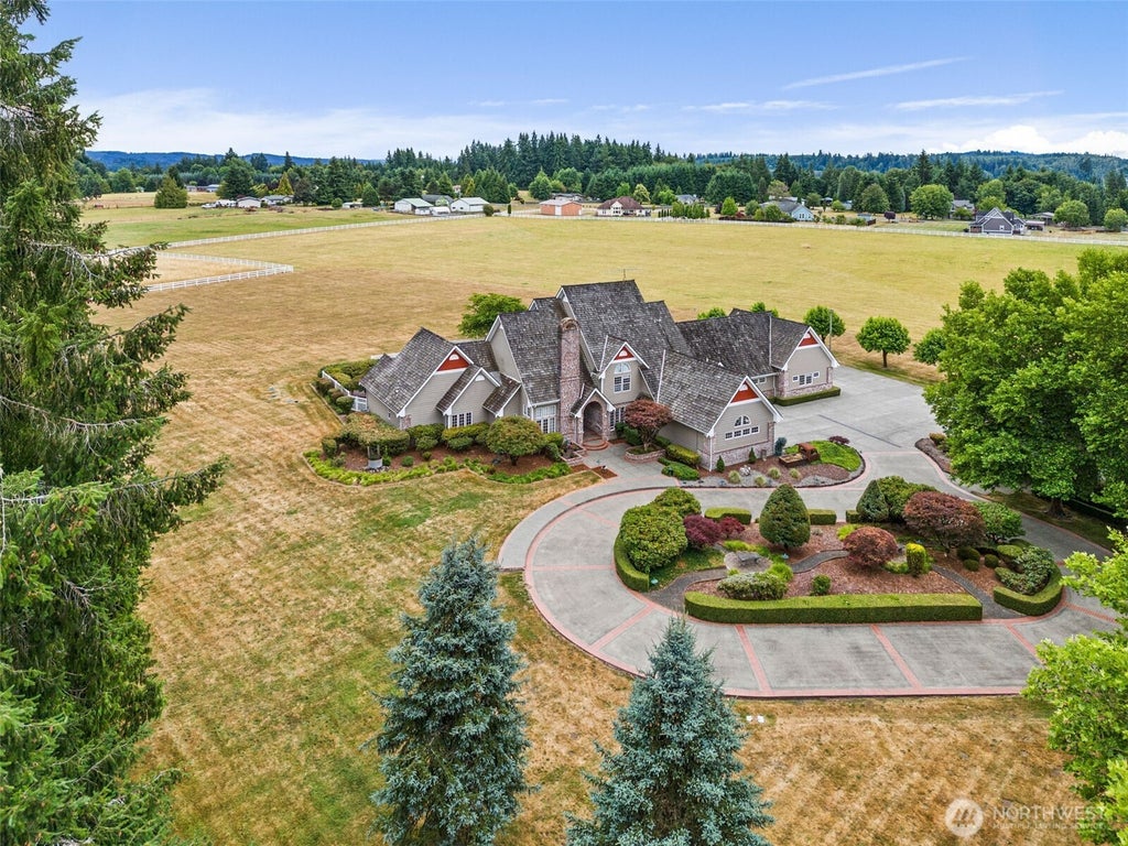 This is more than a home, it’s a lifestyle property with room to dream, grow, and thrive. This custom estate offers a rare blend of refined living and rural charm all set on 29± fully fenced acres in the heart of Rochester just 4 mi to I-5. Featuring an additional 3-car garage with a one-bedroom apartment, a workshop and a barn with 4 bays and 6 stalls. Step inside to vaulted ceilings with an expansive living space including a primary suite on the main floor and an additional one uptairs; also, an office, a formal dining area, butler’s pantry, chefs kitchen and dining room, a game room, a theater room, and a bonus room. The entertaining paradise expands outside to a wonderful deck and patio with a pool, hot tub, fire pit and mountain views!