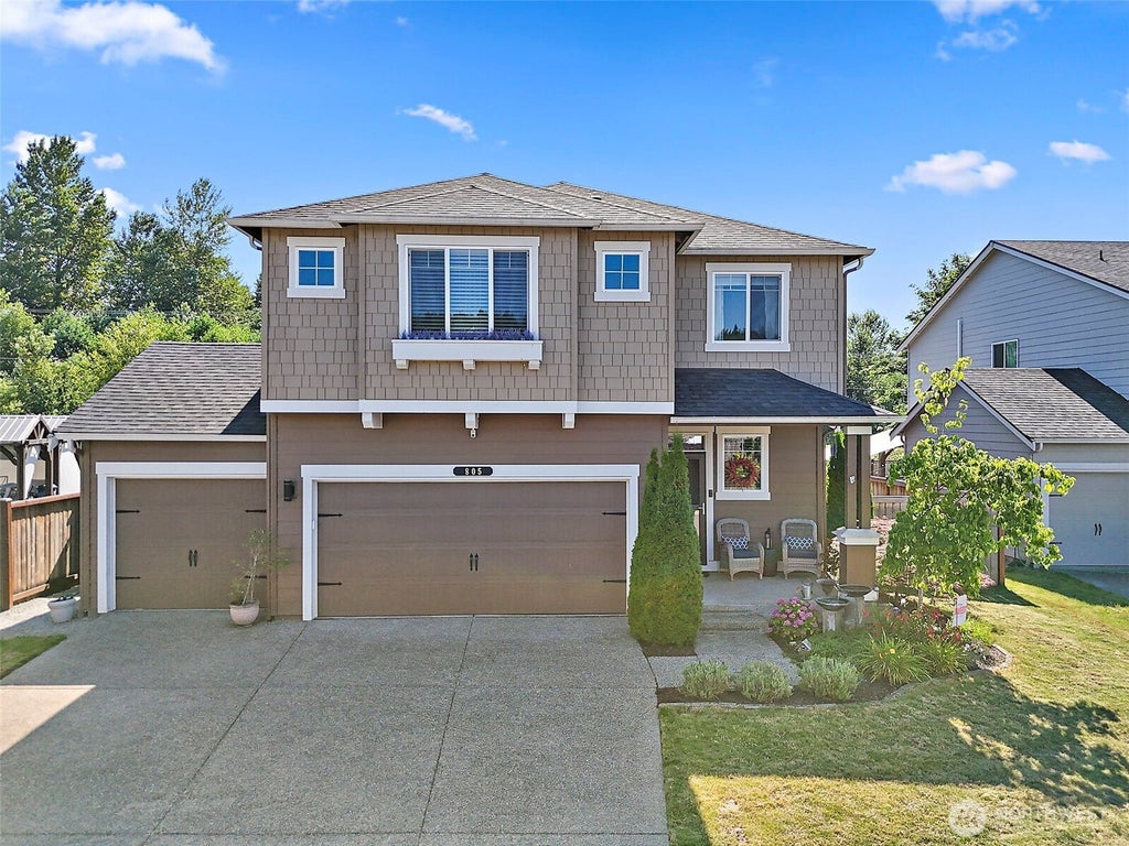 ASSUMABLE VA LOAN AT 3.5%!! Welcome to this beautiful, well layed out 5 bed, 2.75 bath home in the desirable Village Green community in Orting. In the kitchen you will find a large island with granite slab counters, stainless steel appliances and a large pantry. Main floor has spacious and open dining and living room, one bedroom, utility room, and bath. Upstairs, the oversized primary has a 5 piece bath and large walk in closet. Also 3 additional bedrooms, bonus room and full bathroom. Plenty of room for entertaining and gardening in the backyard with views of Mt Rainier. Through the gate, you will find trails and the river! Gazebo. Greenbelt for privacy. Close to shopping, golf, restaurants. Solar panels to keep your energy bills low.