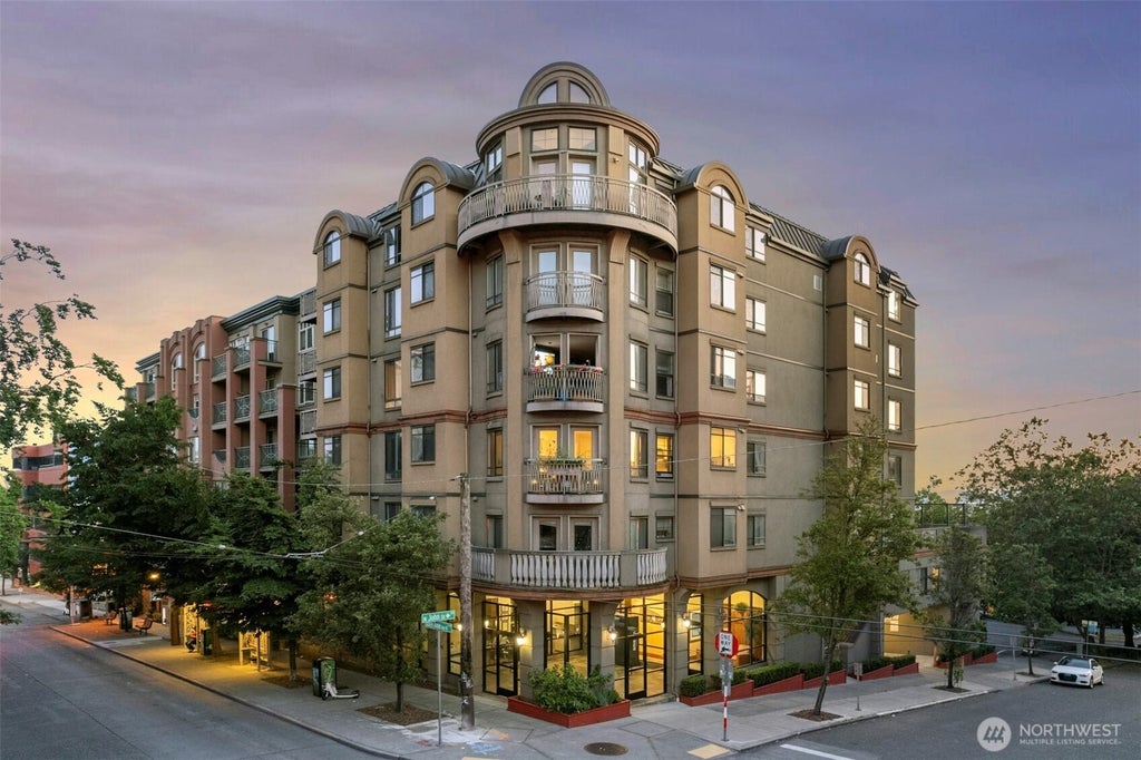 Stunning Elliot Bay and Olympic Mountain views from this bright Selano condo at the nexus of Lower Queen Anne, Belltown, and South Lake Union. Wind down watching ferries glide past Olympic Mountain sunsets from your living area and private deck, then wake up to Elliott Bay views and the iconic PI Globe from your primary bedroom. Freshly painted with brand-new carpet and sleek engineered hardwoods, this home blends clean design with everyday comfort. The versatile second bedroom is ideal for a home office or guest space, with its own 2nd deck. In-unit washer/dryer, secured garage parking, and private storage add convenience. Pet-friendly, no rental cap, and LOW HOA DUES for the area — this is city living, streamlined.