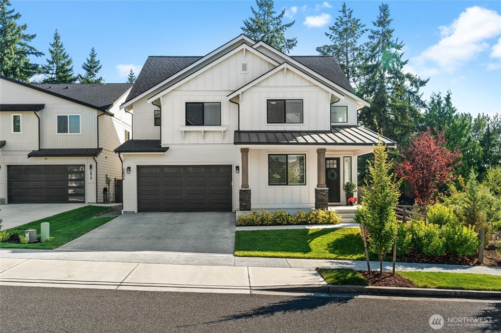 Stunning NW modern farmhouse! This 3-story home blends sleek design with comfortable living & upgraded finishes throughout. The main level offers a spacious guest room/den, ¾ bath, wide-plank flooring, box-beamed ceilings, and a covered deck with fireplace overlooking a beautifully landscaped yard. The chef’s kitchen features quartz countertops, SS appliances, full-height backsplash, bar seating, and a dining area that flows into the great room with gas fireplace and custom built-ins. Upstairs, the luxurious primary suite includes a spa-inspired 5-piece bath, plus 3 more bedrooms and a full bath. The third floor has a large bonus room and ¾ bath—perfect for a media room, gym, or guest retreat. Close to highways, retail, dining, and trails!