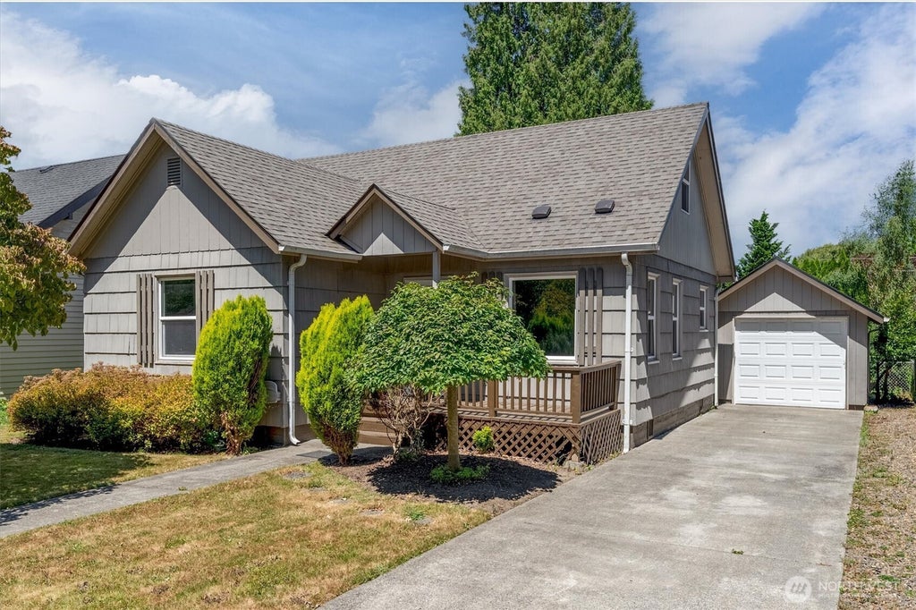 Nestled in a tree lined Longview neighborhood near Lake Sacajawea, this charming 1930s 4 Bedroom 1 Bath home blends comfort and convenience. With 1,183 SF of well maintained space, the main floor features 2 Bedrooms, a Full Bath, and a spacious Kitchen with Dining area. Wood floor entry. The cozy Living room boasts wall to wall carpet, and a generous Laundry room adds to the practicality. Upstairs, you'll find 2 additional Bedrooms. Recent updates include vinyl double pane windows and new Roofs on the home and garage. Outside, enjoy a fully fenced backyard with mature trees, perfect for relaxation or outdoor activities. Conveniently located near schools, parks, shopping, and dining.