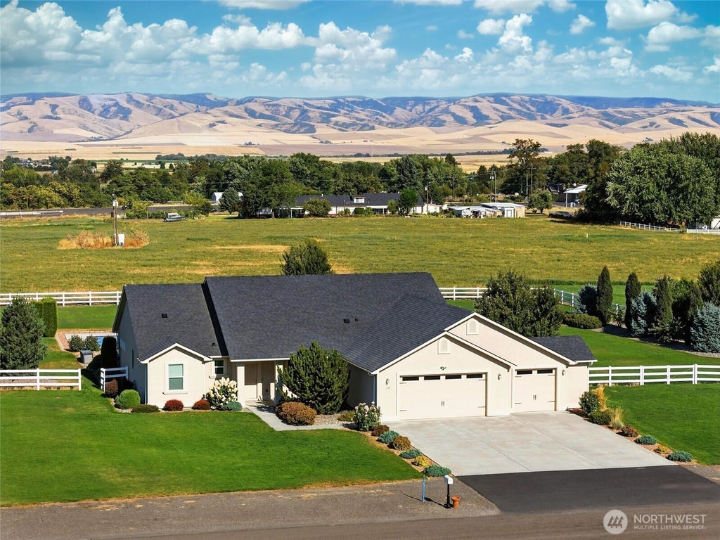 Live your dream in the beautiful Walla Walla Valley in this custom-built, single-level home offering breathtaking panoramic views of the Blue Mountains. Enjoy peaceful living in an upscale neighborhood, with no HOA, a beautifully landscaped yard, and a sparkling saltwater pool. Perfect for entertaining, the covered patio is ideal for outdoor dining & gatherings. Inside, you'll find quality craftsmanship & thoughtful design throughout, including a great room with vaulted ceilings, & kitchen featuring granite counters, walk-in pantry, stainless appliances & conversation bar. Primary bedroom boasts luxurious ensuite and massive walk-in closet. A spacious 3-car garage provides plenty of storage. This is the lifestyle you've been waiting for!