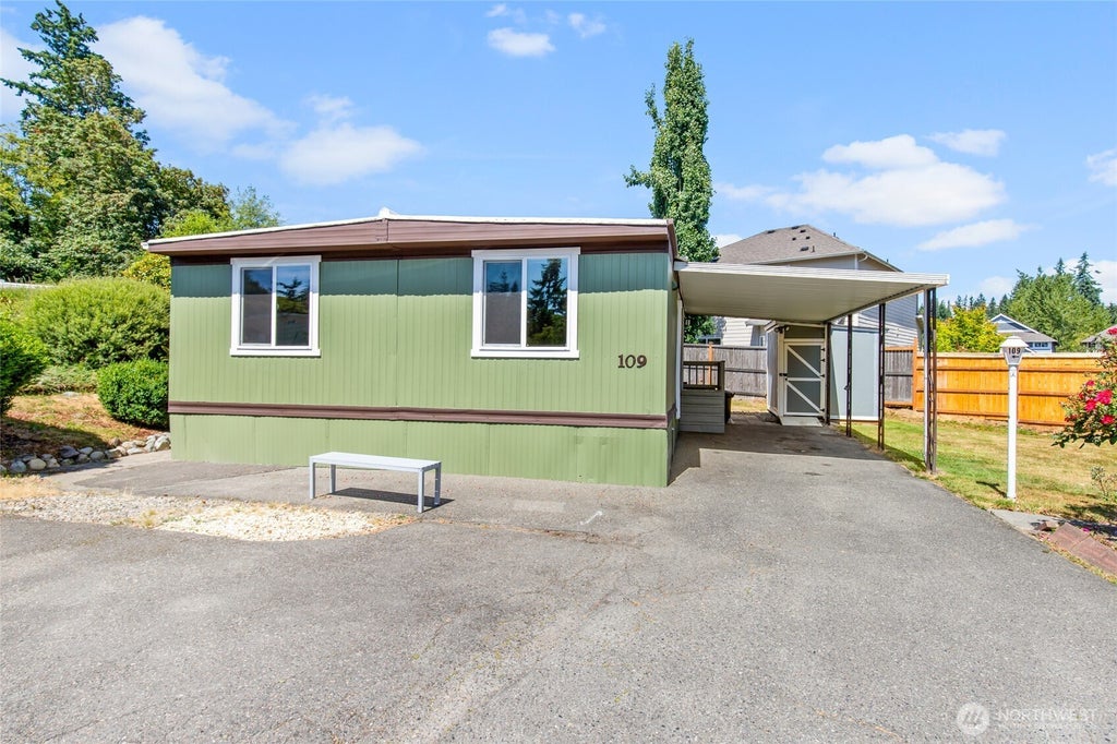 Don’t miss this opportunity to own a fully renovated home in the sought-after 55+ Carriage Club Estates! This low-maintenance, double-wide one-bedroom, one-bath home features a bright, open layout that leads to a landscaped backyard. Thoughtful updates include a new water heater, plush carpet with premium padding, new laminate flooring, updated window coverings, brand-new kitchen cabinets, natural stone backsplash, and high-end stainless steel appliances. Park rent covers water, sewer, and garbage. Enjoy community perks like a clubhouse, RV parking, and a dog area. Conveniently located near bus lines, the Mukilteo ferry, Alderwood Mall, shopping, dining, medical services, I-5, and Boeing.