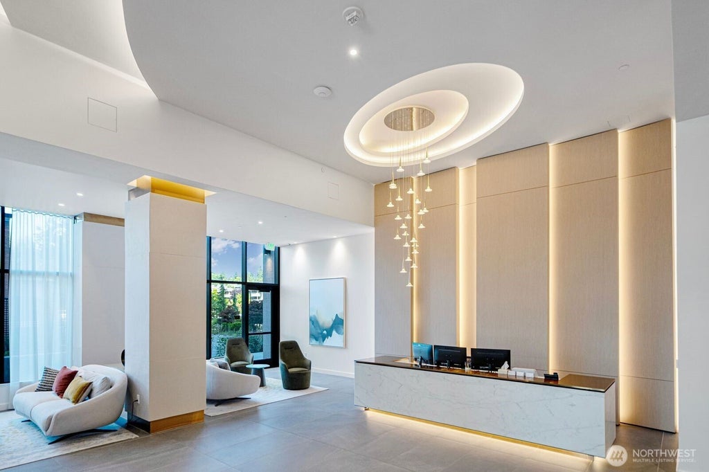 Breathtaking views in downtown Bellevue! Walk to upscale dining, shopping & parks. Minutes from Amazon, Microsoft & major tech employers.Finishes include custom kitchen cabinetry with wood-paneled appliances, quartz countertops, around 10 foot ceilings, wood floors throughout and Latch keyless entry. Premium amenities: 24/7 concierge, fitness center, yoga studio, dog run/wash, plus the exclusive top-floor SkyClub with dining access & outdoor terraces. Your gateway to Bellevue's finest urban living.