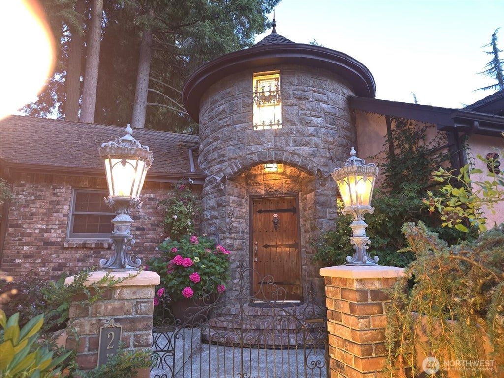 Welcome to the Tudor Castle in Cooper Point! Enchanting custom-built masterpiece exudes timeless elegance & captivates w/ its storybook English courtyard, w/ fountain & grand stone turret entry. Inside, the magic continues across 4 BRs & 2.75 BAs. Spacious primary suite offers a luxurious bath w/ jetted tub. Gourmet kitchen features master-crafted cherry cabinetry, granite counters & island, flows to family room w/cozy gas FP. The interior is adorned w/custom wood doors, moulding & trim, stucco walls, Victorian light fixtures, & whimsical murals adding artistic flair. Sun-drenched corner lot showcases mature, curated landscaping, vibrant flower beds & flowering trees for year-round beauty. Desirable Oly Schools. Minutes to local amenities