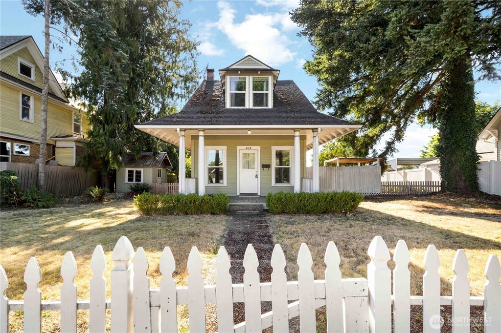 Fall in love with this 1895 charmer that perfectly blends vintage details with modern updates. Thoughtful touches include, crown molding, wainscoting, and an antique mantle around the gas fireplace. The updated kitchen and bathrooms shine, with a main bath featuring a walk-in shower. Brand new carpet adds comfort throughout. The primary suite offers a half bath, and a slider off the sitting room leads to a deck perfect for entertaining. With a detached garage, carport, flex space, shed, ductless mini-split, and a classic white picket fence, this 1,400 sq ft home is the whole package!