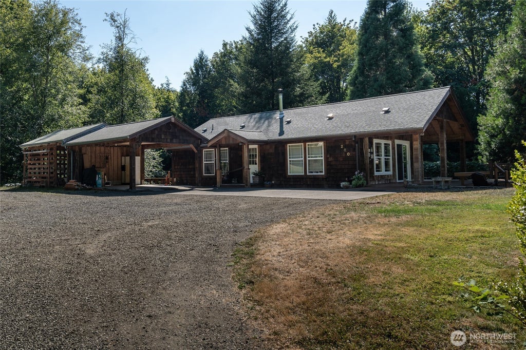 First time hitting the market. People don’t let go of property like this! PRIVATE 5-acre retreat perfectly situated between Mason & Thurston—just 2 minutes to Hwy 101. This high-end 2 bed, 2 bath manufactured home features NW-style shingle siding, a cozy wood stove, and a huge entertaining deck. Multiple outbuildings offer powered garage doors, a wood stove, and an extra half bath—plus, woodshed, and extra storage. 3bed septic allows room to expand. Stroll rustic trails through evergreen trees, fruit trees, blueberries, blackberries, and the cutest babbling brook. A rare mix of comfort, utility, and natural beauty—room to live, work, and breathe--all in THE prime location! BY APPT ONLY - DO NOT DISTURB OWNERS