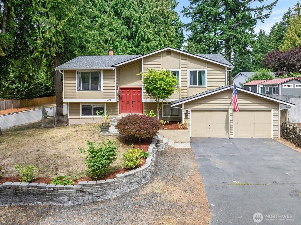 Situated on a spacious, fully fenced corner lot with room to park an RV, this home is located in a perfect location—close to just about everything! The oversized two-car garage includes a dedicated storage area—perfect for keeping things organized or turning into a fifth bedroom if needed. Inside, the lower level features a flexible bonus room, a full bathroom, a generous laundry room, and an expansive entertainment space—ideal for movie nights or game days. Upstairs, you'll find three comfortable bedrooms, another full bath, a well-appointed kitchen, and a bright, open living room. Step out from the dining area to the deck to enjoy your morning coffee. Roof is new, gutters and appliances are all less than 5 years old, talk about turn-key!