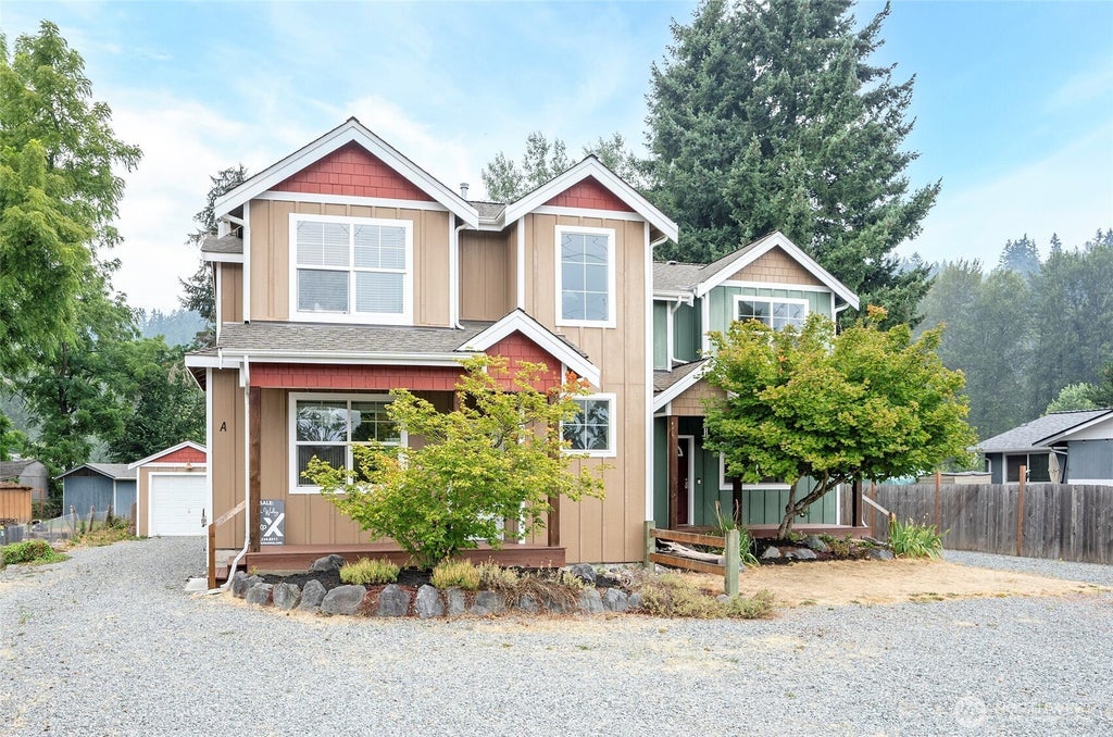 The absolute LARGEST Craftsman duplex in sought-after Orting! Fresh interior paint throughout, with one unit featuring new appliances and carpet. Each spacious unit offers 9-ft ceilings, an open main floor with a large kitchen, abundant cabinetry, island, and dining area flowing to the great room with cozy gas fireplace. Main floor den and ½ bath. Upstairs includes a built-in office nook, laundry, 3 bedrooms, and 2 baths. Private fenced yard, patio, and detached garage. Pre-inspected—major items already addressed! Prime location near downtown and the Carbon River walk. Two parcels—always rented!