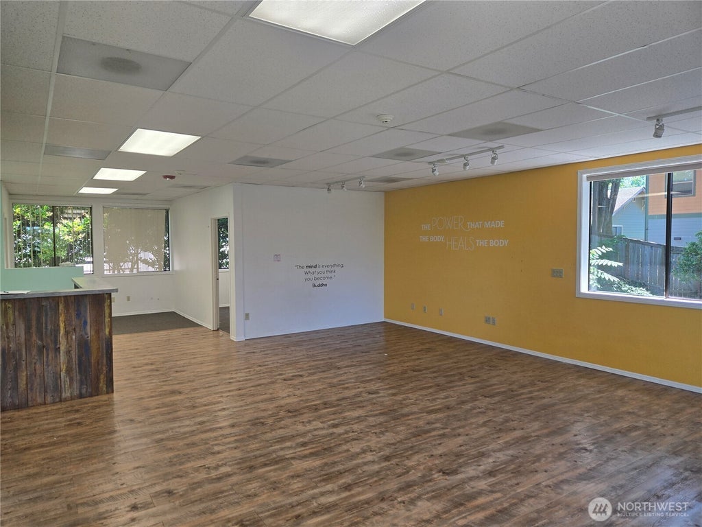Versatile commercial space available for lease, ideal for office, wellness, or creative use. Features include a welcoming reception area with rustic desk, large open room with abundant natural light, and multiple private offices or treatment rooms. Shared kitchen/breakroom and bathrooms with neighboring suite. Perfect for counselors, chiropractors, massage therapists, consultants, or small businesses seeking a functional and professional setting. Bright windows, clean finishes, and a flexible layout make this space move-in ready. Convenient location just outside of downtown Olympia.