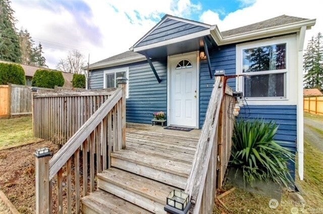 Adorable home in the highly desired University Place School district! Don't let the size fool you this home lives large with the huge fully fenced yard with lots of possibilities and Large shop/storage building that could maybe be used as a studio or an ADU. This home sits up high and offers beautiful views of this quiet serene neighborhood and peek a boo views of the sound from the front deck. Tons of parking and a gated driveway. There's even room to add on to the home. Remodeled kitchen, bath and newer appliances just 3 yrs old. Already Inspected and ready for its new owner. New exterior paint as well! What more could you ask for? A 1 yr home Warranty? You got it!