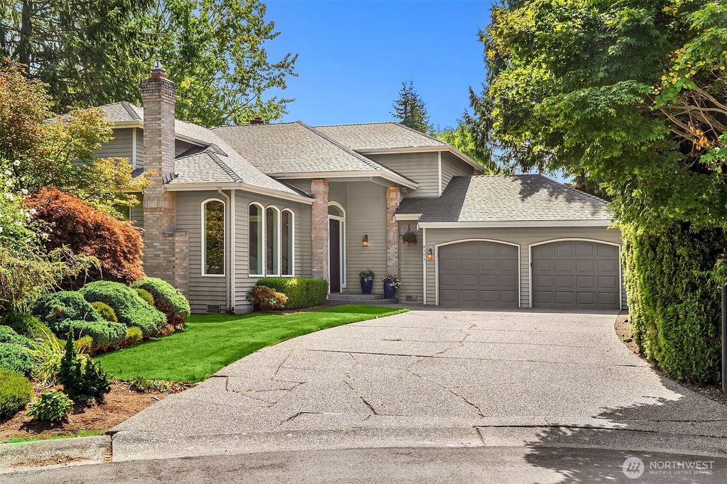 Tucked away at the end of a charming cul-de-sac, this 4-bedroom home welcomes you with a grand two-story entry. The vaulted great room features an array of arched windows that flood the space with natural light and style. The kitchen is designed for entertaining, with a center island hosting a built-in range and counter seating, updated cabinetry, and an open layout to the living room. Step outside to a peaceful back deck, your perfect spot for quiet mornings or lively gatherings. The primary suite is a true retreat, boasting a skylight, generous closet space, and a well-appointed 5-piece bath. The expansive two-car garage includes a workshop area and a pull-down ladder for abundant storage. Outside is a detached shop and a cozy firepit.
