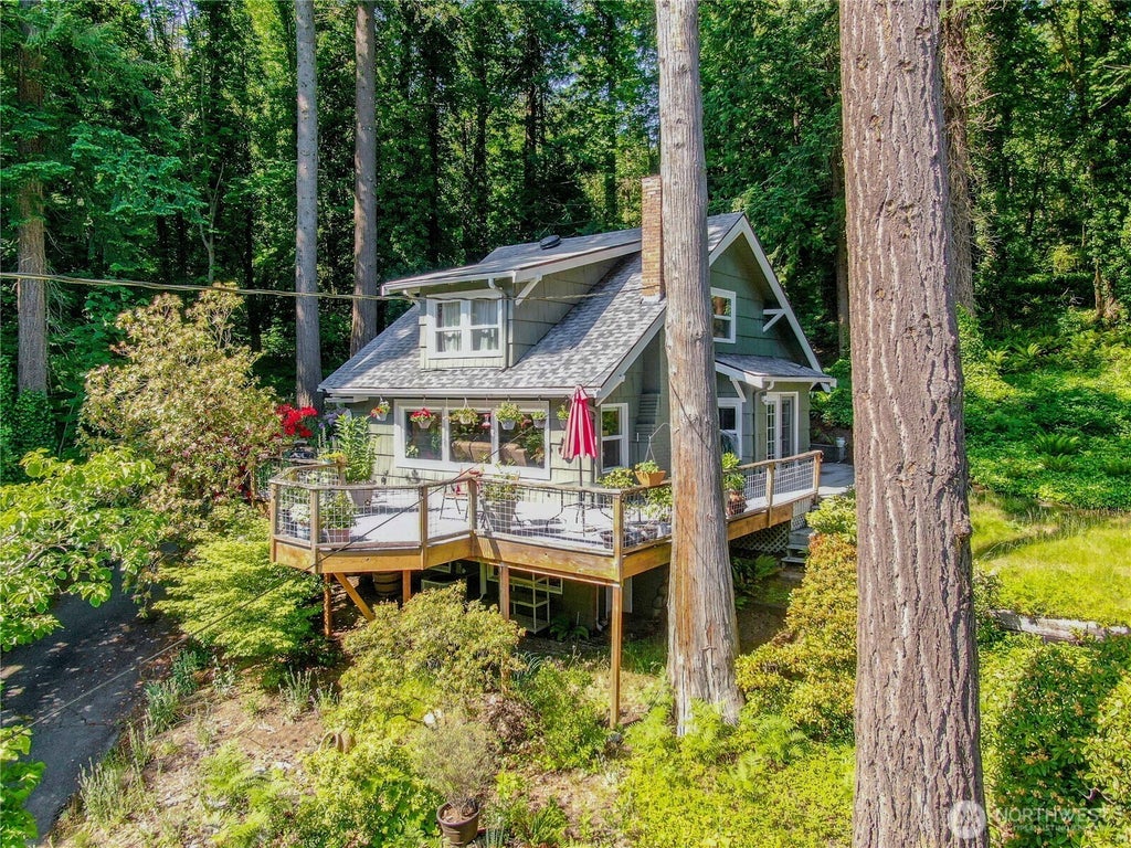 Nestled among evergreens in the rolling hills of South Bellingham, this home offers a peaceful, forest-like setting with rare privacy. Bordering the city’s newest park project—Hundred Acre Wood—miles of scenic trails and outdoor adventures are right outside your door. Inside, warm wood floors, a cozy wood-burning fireplace, and abundant natural light create a welcoming retreat. The main-level primary suite features direct deck access, while upstairs provides three additional bedrooms. A spacious deck is perfect for morning coffee or outdoor entertaining, with garden beds ready for your personal touch. Additional highlights include a carport, a partially finished basement for flexible use, and potential to create a second residential unit.