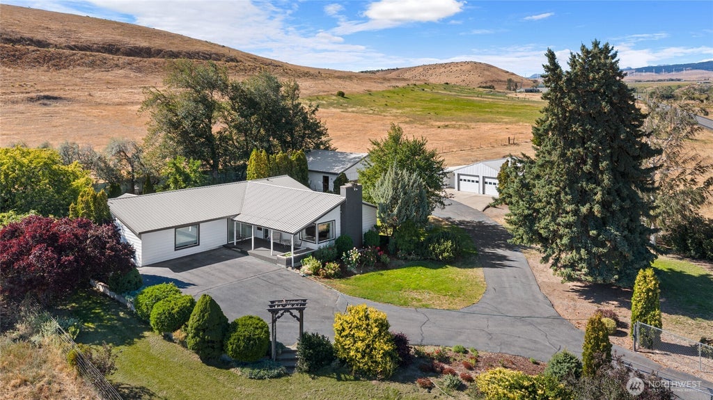 Escape to the country and enjoy rural living on 2.25 acres! This charming 3-bed, 1.75 bath home has it all! An oversized kitchen and dining area & huge rec room for relaxing or entertaining! A bright living room with views of the valley and hills where you can take in all the sunrises! Step out onto the covered porch and soak in the peaceful surroundings. The back yard is very private and there are fruit trees and a garden space. Two shops offer endless possibilities- create your dream workshop or enjoy tons of covered parking! Some new flooring and new exterior paint! Metal roof. The gated entry and paved driveway add even more appeal. Dont miss this rate country gem!