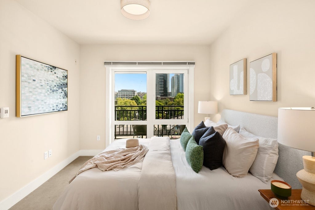 Live in the heart of South Lake Union at Marselle Condominiums, where modern style meets everyday convenience. Spacious 1-bedroom + den home w/new interior paint, walnut-toned hardwoods, and floor-to-ceiling windows that showcase dynamic city views. The kitchen offers a granite-topped island, stainless steel appliances, and ample cabinetry. Residents enjoy amenities - a fitness center, yoga studio, pet-friendly spaces, a community lounge with billiards, and rooftop decks with sweeping views of the Space Needle and downtown skyline. Walk Score of 98, steps from Amazon, Google, Whole Foods, dining, shopping, and cultural attractions. Yes, please: secure parking, storage, in-unit laundry, private deck, pet-friendly policies, & no rental cap!
