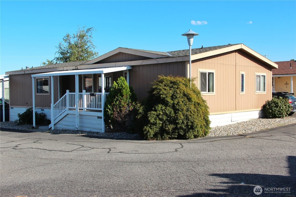 Welcome to this 1,568 sq. ft. Guerdon double wide home in Westview Park, an all-ages community with a great Wenatchee location. Just minutes from shopping and daily needs, this home provides both comfort and convenience. Offering 3+ bedrooms, 2 bathrooms, and vaulted ceilings in the living area, the layout feels open and inviting. Enjoy two covered porches for outdoor living, plus parking for two vehicles, one under cover. Move-in ready. Chattel loans are available on manufactured homes. Monthly space rent: $575, Owner-occupied only, Pets allowed (with restrictions), Park rental application required and available upon request.