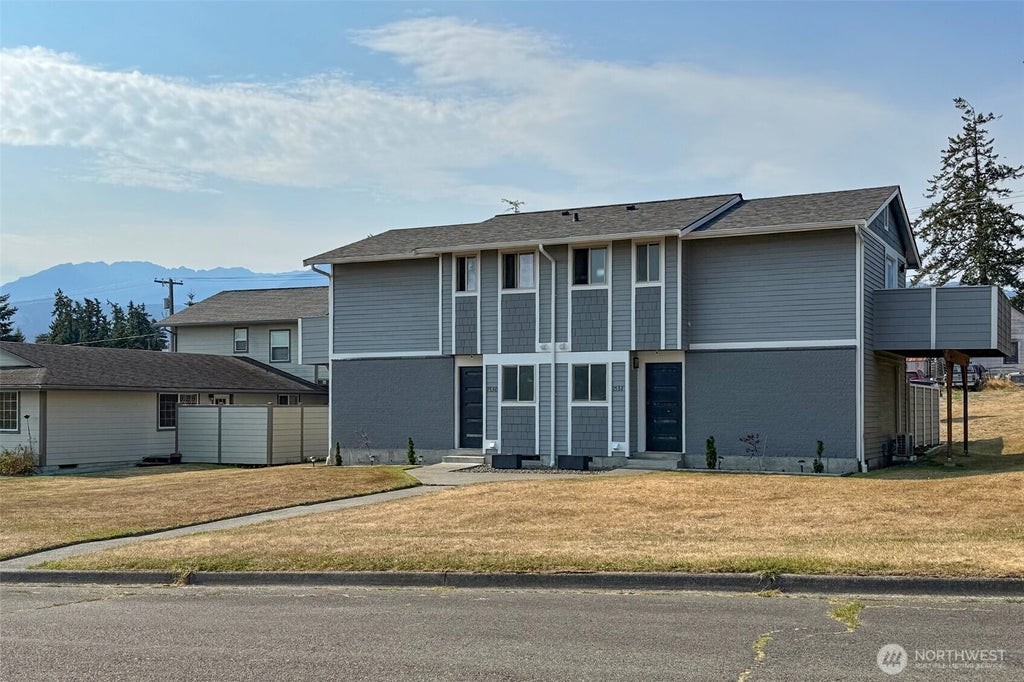 Twin Peaks East — Stylish Duplex with Mountain Views! Fully remodeled duplex with 1,000 sq ft per unit, each offering 2 beds, 1.5 baths, and sold furnished. Located on a quiet west side street in Port Angeles on an oversized lot. Live in one unit and lease the other month-to-month. Each includes stocked kitchen, linens, Smart TV, BBQ, washer/dryer, and carport with storage. Extra alley-access parking available. Enjoy fenced patio with mountain views, laminate flooring, designer lighting, ductless heat pump, quartz counters, and stone accents. Upstairs features two bedrooms, full bath, and a deck with water views. Minutes from downtown, trails, and Olympic National Park—this is a rare chance to own a turnkey duplex in a prime location.