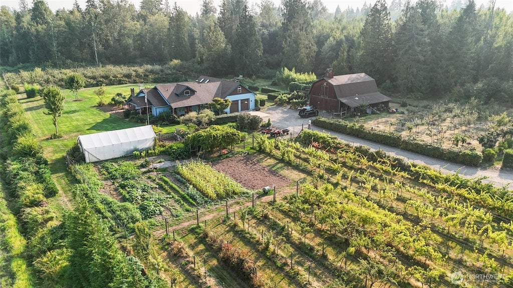 A rare 15-acre lifestyle estate where nature, design, and Northwest elegance come together. Centered around curated gardens and wooded surroundings, this property offers beauty, privacy, and connection to the land. The residence blends craftsmanship & warmth, featuring soaring ceilings, a gourmet kitchen w/ breakfast nook, & a copper-tiled sunroom that opens seamlessly to the gardens. The primary suite is a private retreat w/ fireplace, spa-like bath, & tranquil views. A guest cottage, powered barn, and flexible acreage allow for equestrian use, hobby farming, or multi-gen living. Bordering the 72-acre Fenton Nature Reserve, this estate offers trails, serenity, & a rare opportunity to live in harmony w/ the Pacific Northwest landscape.
