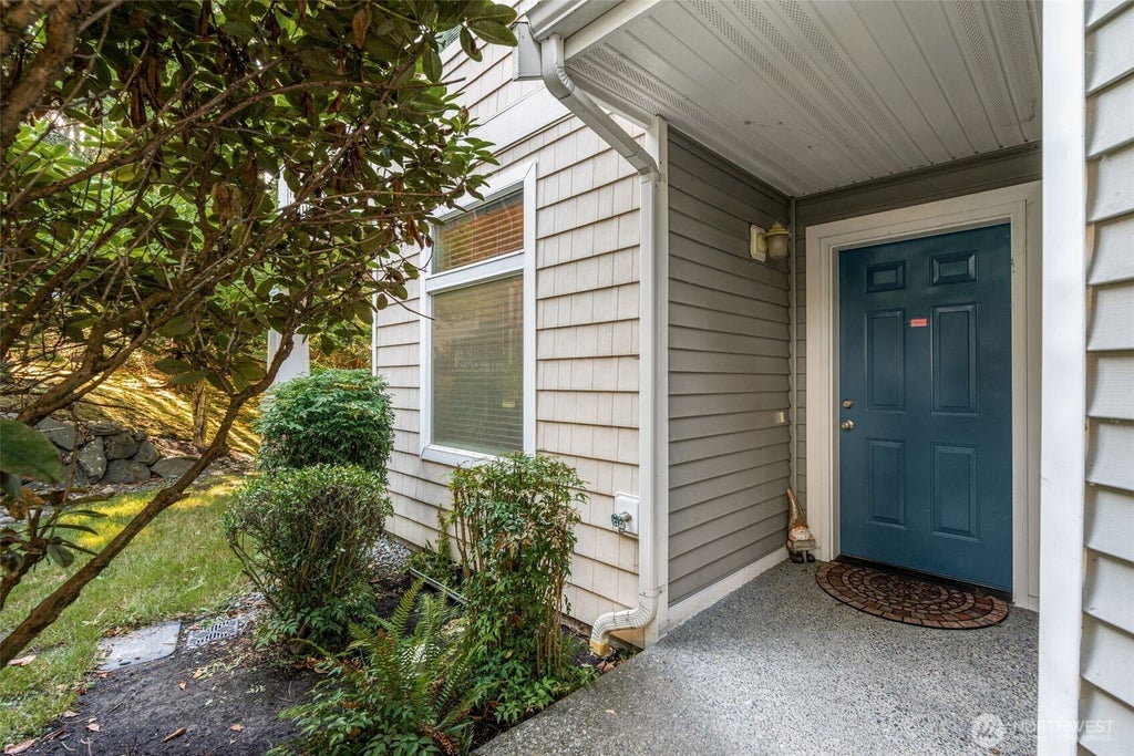Welcome to this desirable end-unit home offering high ceilings, an open floor plan, and abundant natural light. The bright living room features a cozy gas fireplace, perfect for relaxing evenings. You'll love the spacious primary suite complete with a full bath and double vanity. The kitchen is a standout with stainless steel appliances, a breakfast bar, and ample storage—ideal for everyday living or entertaining guests. Step outside to your covered patio overlooking a quiet, wooded greenbelt for peaceful morning coffee or evening unwinding. Additional highlights include an attached garage and unbeatable access to Hwy 99, 167, and I-5. Enjoy nearby trails, a dog park, and so much more. This home has it all-location, comfort and convenience!