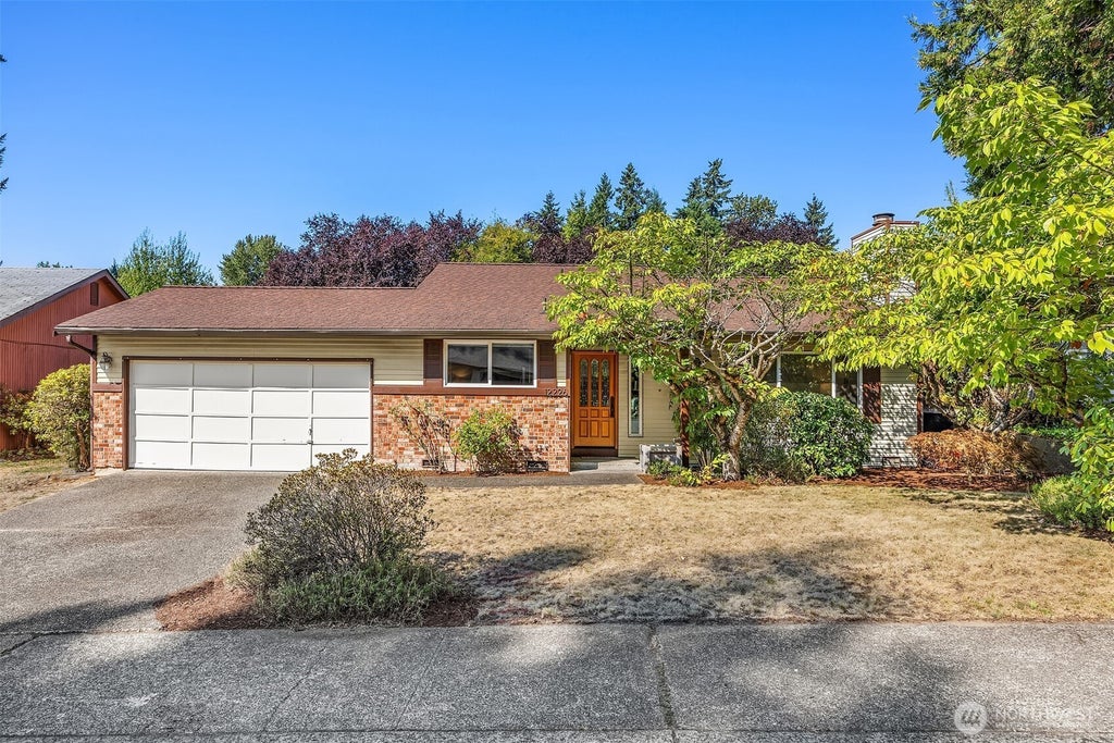 Welcome to this beautifully updated Kent home on a spacious lot in Meadowgreen Estates. The open layout features a bright living room with 20' vaulted ceilings, a welcoming fireplace, an updated kitchen with quartz counters, and seamless flow to the dining area. The primary suite offers a private retreat with a remodeled bath, while an additional bedroom and bathroom provides flexibility as a guest room, office or flex room. Enjoy year-round entertaining on the large patio overlooking a fully fenced backyard. With fresh paint, newer flooring, large laundry room and a two-car garage, this home is move-in ready. Conveniently located near schools, shopping, and easy commuter routes.