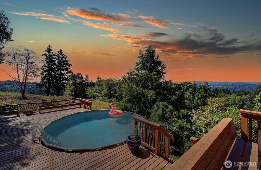 Stylishly updated manufactured home sits on 2 acres w/ fantastic territorial views. Beautifully updated kitchen & bathrooms, new interior & exterior paint plus new carpet and water heater! Every inch of trim, doors and door handles, faucets, sinks and newly tiled showers! New heat pump to be installed. Roof just a few years old. Close in (2 miles to I-5) acreage w/ large driveway (room for all your toys and RV) all this plus an above ground pool! Primary bedroom has roomy walk-in closet w/built-ins, attached spa like bath w/ walk-in shower, soak tub and a sink that is like a piece of art! Primary has a sliding glass door to a private deck and access to the pool. Oversized garage and easy to maintain yard with mature plantings. WATCH VIDEO!